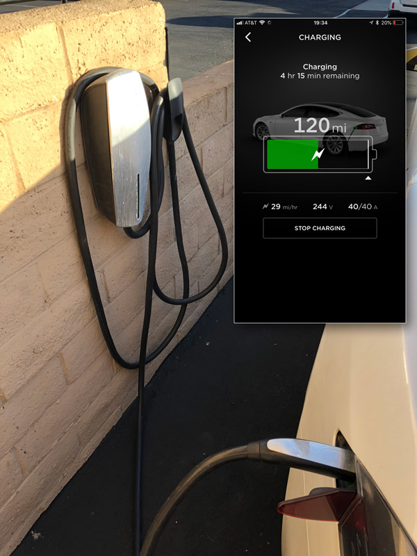 Redondo Beach, CA (80 miles left; avg 255 Wh/mi; charged to 132 miles)